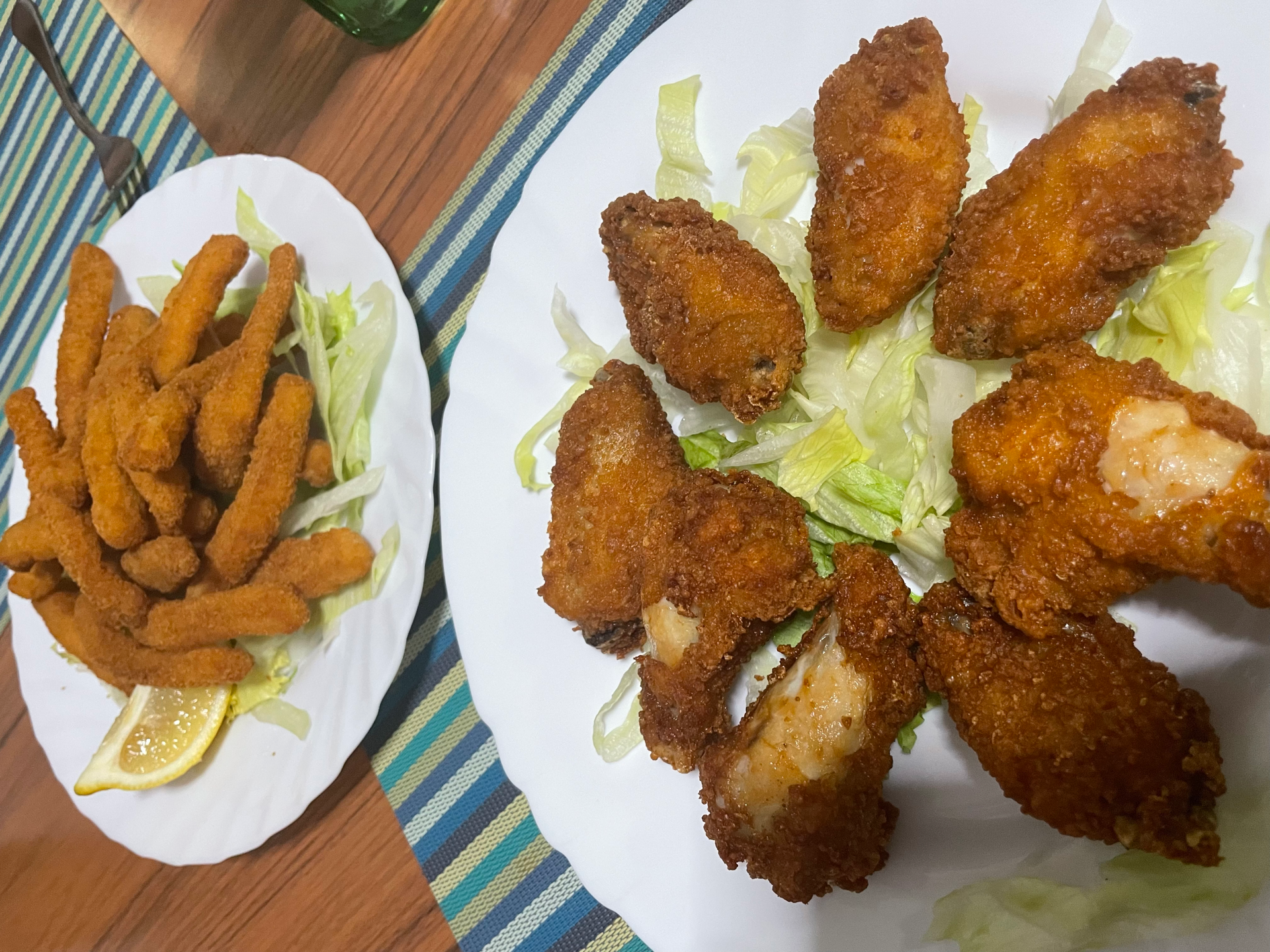 7. ALITAS DE POLLO, PATATAS Y ENSALADA